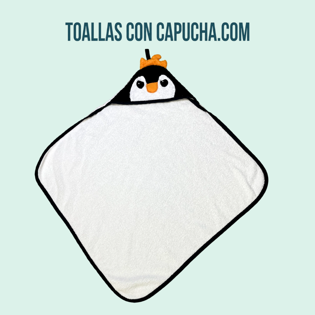 La capucha incorpora una aplicación textil de pingüino, cosida una a una, que aporta un toque divertido y especial sin renunciar a la comodidad. Incluye además un lazo para colgar, pensado para facilitar su uso y almacenamiento en el día a día.